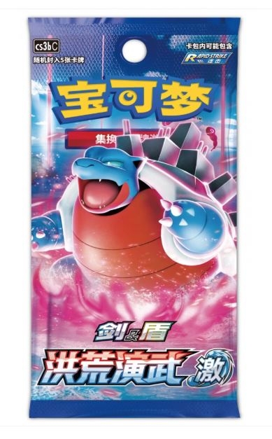 I tillegg følger det med to stk booster pakker hver av kinesiske Sword & Shield 5.0 CS3aC+CS3bC. Dette er kort hentet fra engelske Chilling Reign og Battle styles. Her kan man trekke både alt art Blaziken, Sleepy Tyranitar og Zapdos!